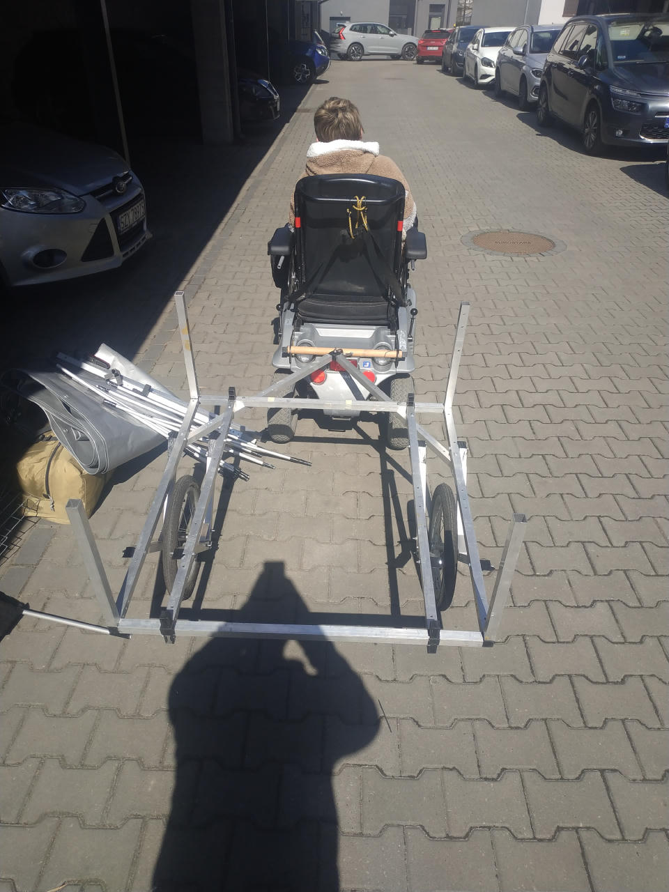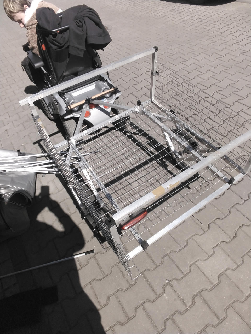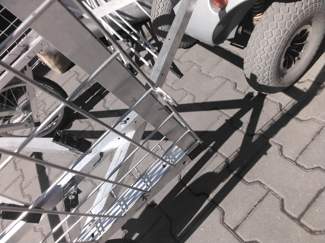 Zdecydowalismy się zbudować przyczepkę, którą można ciągnąć za rowerem, wózkiem elektrycznym, quadem lub od biedy za samochodem. Można ją też prowadzić jako wózek ręczny, a nawet zapiąć do pasa i holować „własnonożnie”.